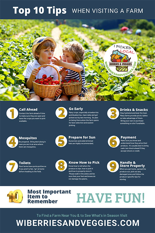 - Call Ahead - Most important, contact the farm ahead of time to make sure they are open and have the crops you want to pick available. It's no fun to arrive excited to pick only to find out they are picked out or unexpectedly closed.